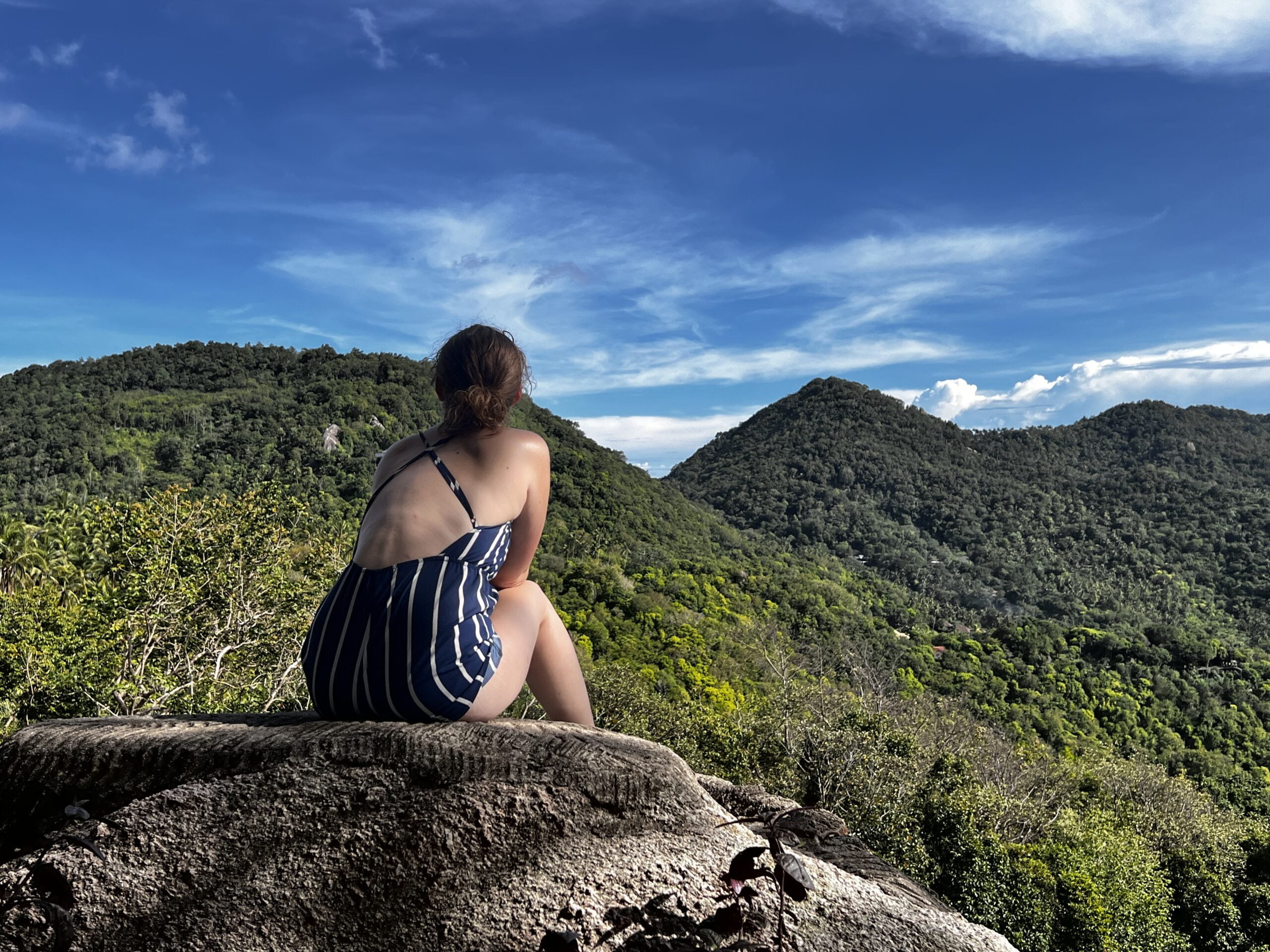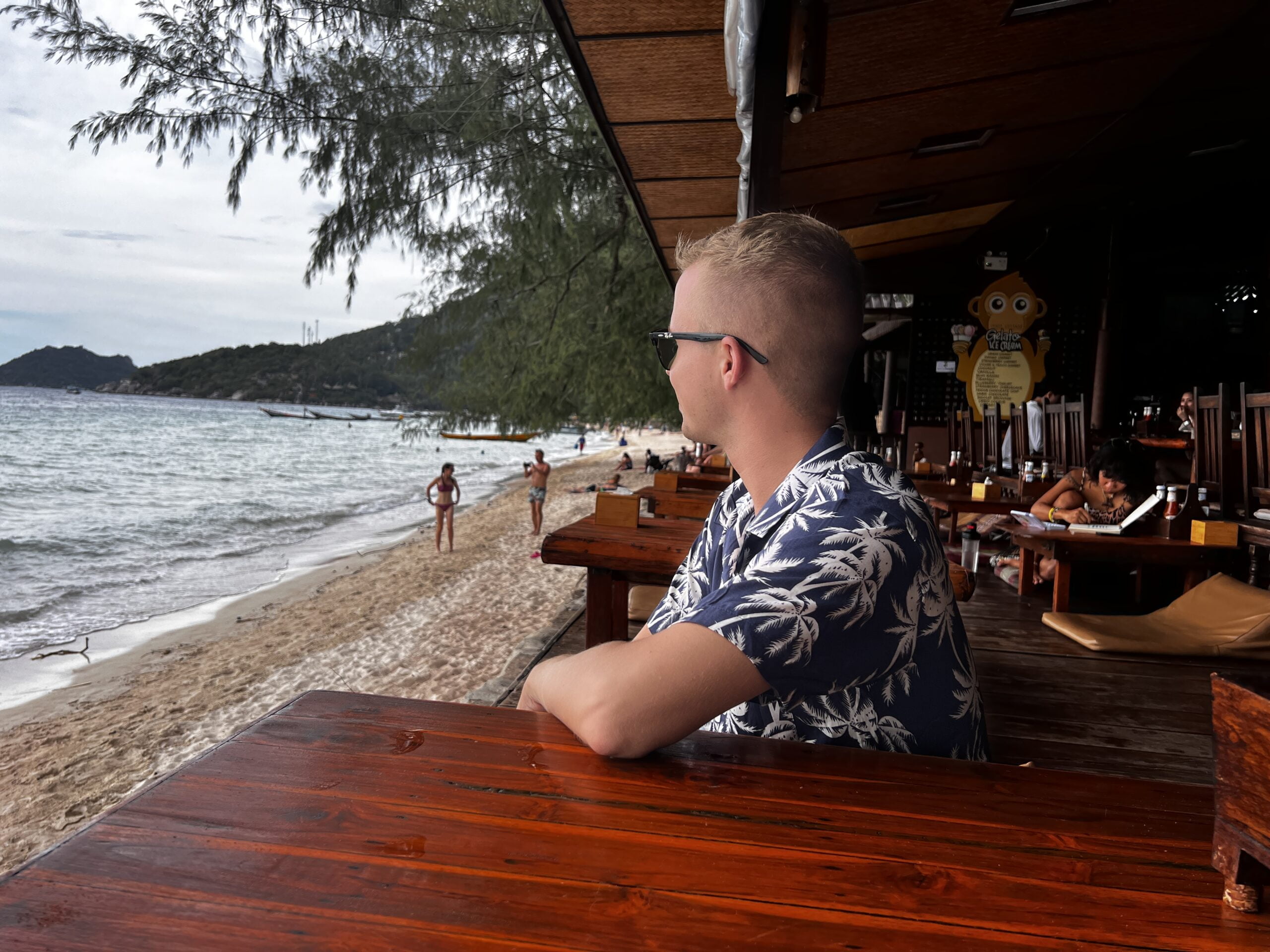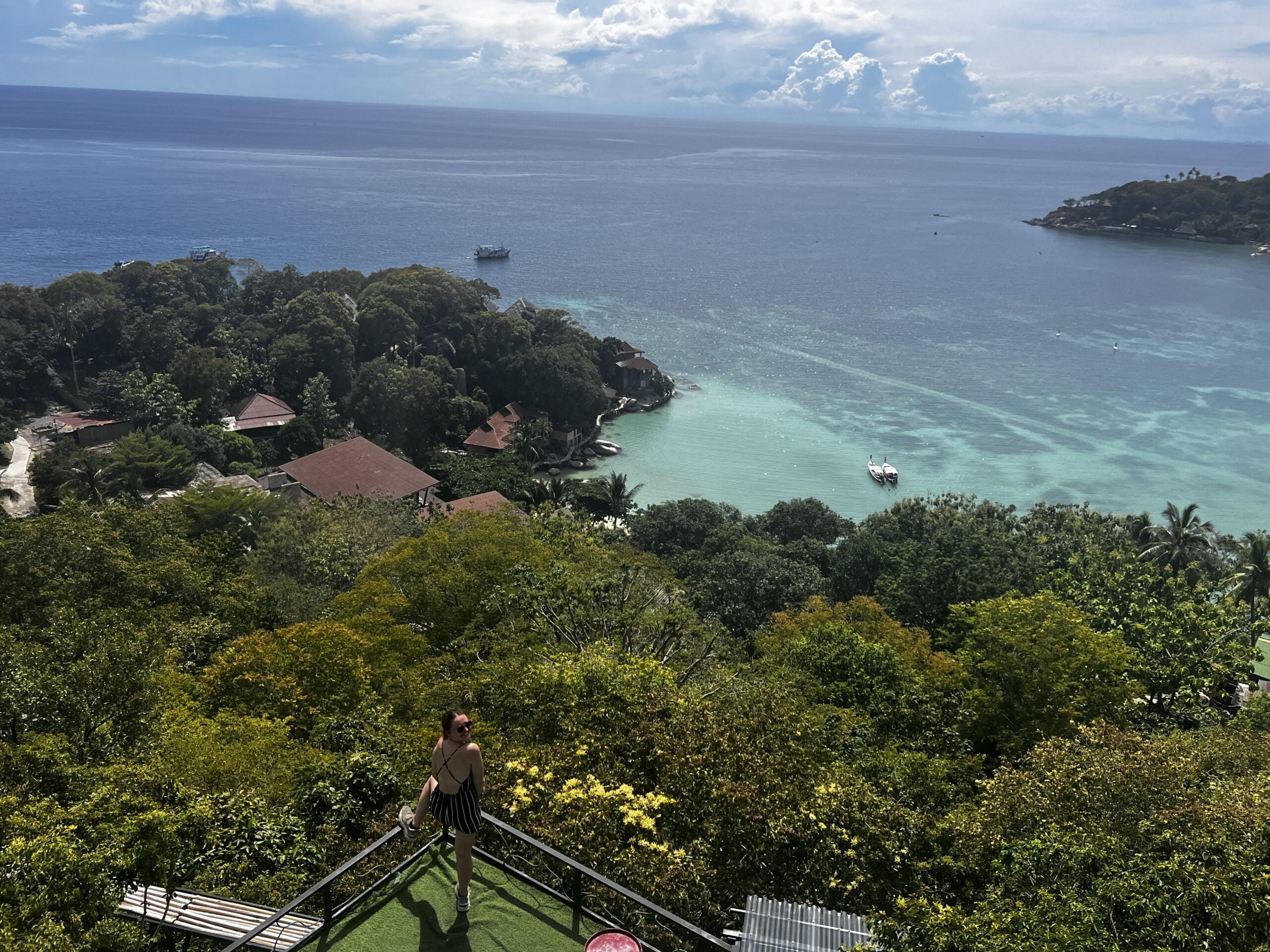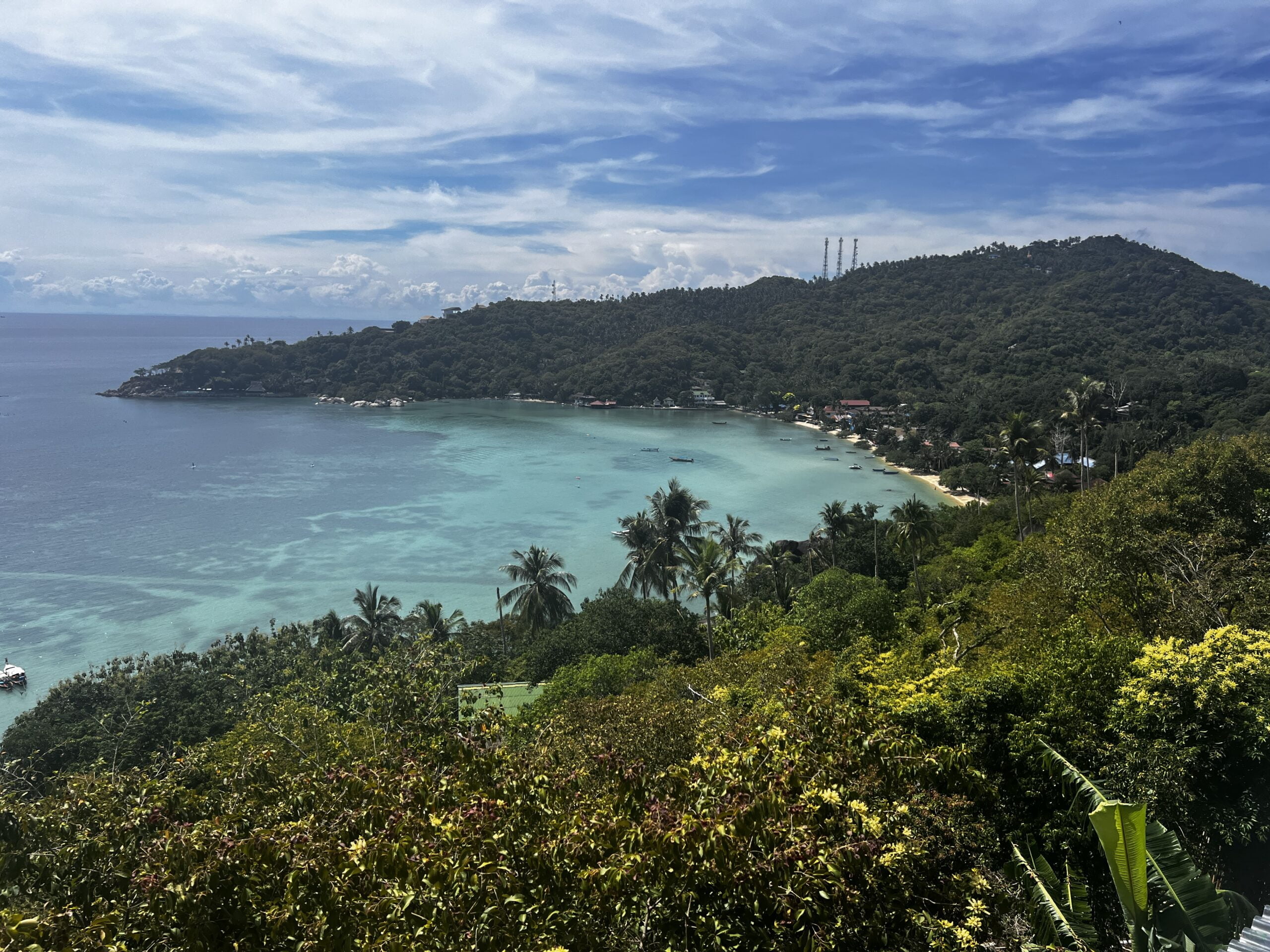 Koh Tao is een eiland van 21km2, ofwel nog 20 keer zo klein als Texel. De hoofdstraat bestaat voornamelijk uit allemaal hippe (toeristische) barretjes en toen we daar aankwamen was ik nog niet echt enthousiast. Over het algemeen heb ik een hekel aan plekken waar meer blanken rondlopen dan locals maar er is een reden dat iedereen hier naartoe trekt, Charlotte vond het hier meteen al geweldig. Toen we ingecheckt waren bij onze bungalow met uitzicht op zee waar je de hoofdstraat niet kunt horen werd ik al een stuk blijer. Met een kokosnoot in een barretje aan het strand zaten we samen naar het prachtige uitzicht op de zee en de met groen bedekte bergen te kijken en toen werd ik ook een beetje verliefd op deze plek.