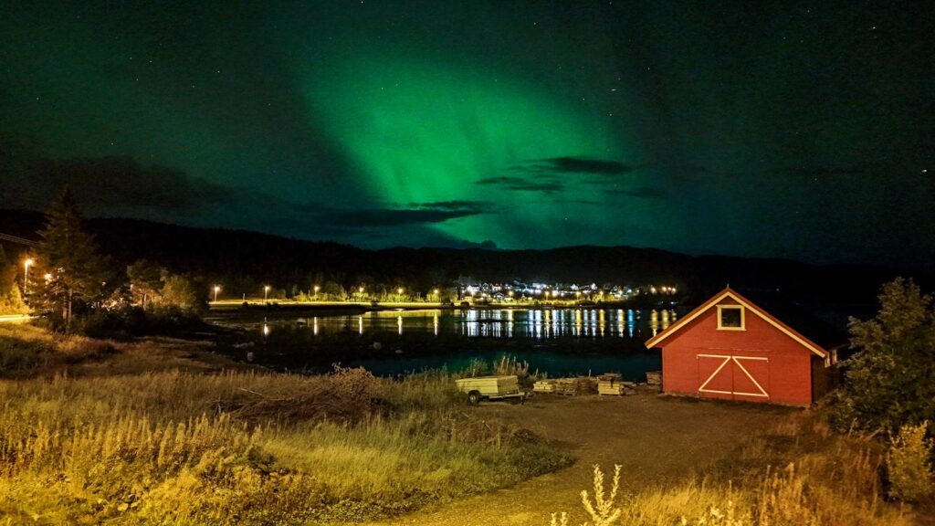 De eerste 2 nachten dat er kans was om het noorderlicht te zien heb ik tot laat zitten wachten maar gebeurde er niets. De nacht erna besloot ik maar gewoon te gaan slapen en toen werd ik wakker gemaakt door mijn oom dat er toch iets te zien was. Die nacht was er heel lichtjes iets te zien in de lucht of misschien sliep ik gewoon nog terwijl ik buiten stond. De 2 avonden erna was het al rond 23:00 raak en echt schitterend om te zien. Langzaamaan veranderde de lucht dan in een soort lasershow waar er eerst groene vlekken verschenen en daarna strepen in de lucht tevoorschijn kwamen. We hebben beide avonden lang buiten gestaan en genoten van dit bizarre fenomeen, heel gaaf om gezien te hebben. De ene avond stonden we ergens aan het water en de andere avond op een totaal verlaten berg zonder omgevingslicht, waardoor de sterren ook nog mooi zichtbaar waren.