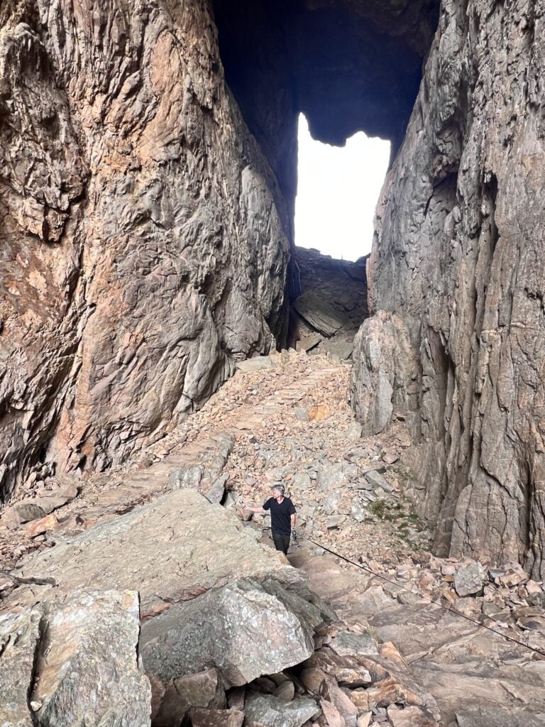 De laatste dag voor mijn vertrek naar huis hebben we nog een mooie wandeling gemaakt naar Torgatten. Dat is een berg in de buurt van Bronnoysund, de plek waar ik vandaan ben gevlogen. Het bijzondere aan deze berg is dat er op 160 meter hoogte een gat in zit van 35 meter hoog waar je doorheen kunt lopen. De Noren geloven dat het gat ontstond doordat een trollenkoning een magische pijl op de berg heeft afgevuurd ooit, jaja… In ieder geval was het een mooi uitzicht vanaf boven!