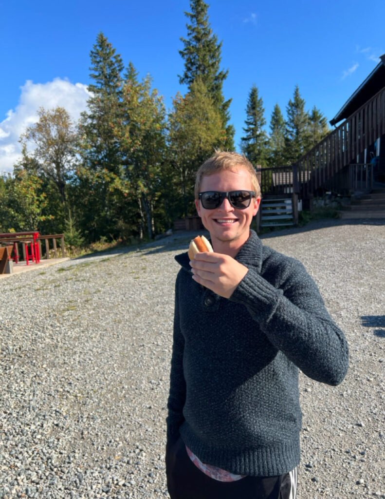 We dachten even kort de hond uit te gaan laten voor de lunch maar ineens zaten we op de route om naar de grootste tuinstoel ter wereld te lopen die boven op een berg staat, na wat gegoogel lijkt dat een beetje overdreven te zijn van de Noren. Het was in ieder geval een flinke wandeling maar ik had ondertussen al gezien op Google Maps dat er boven een restaurantje zou zitten dat open was. Mijn oom was met wat meer ervaring in Noorwegen sceptisch, ik vol vertrouwen natuurlijk.
