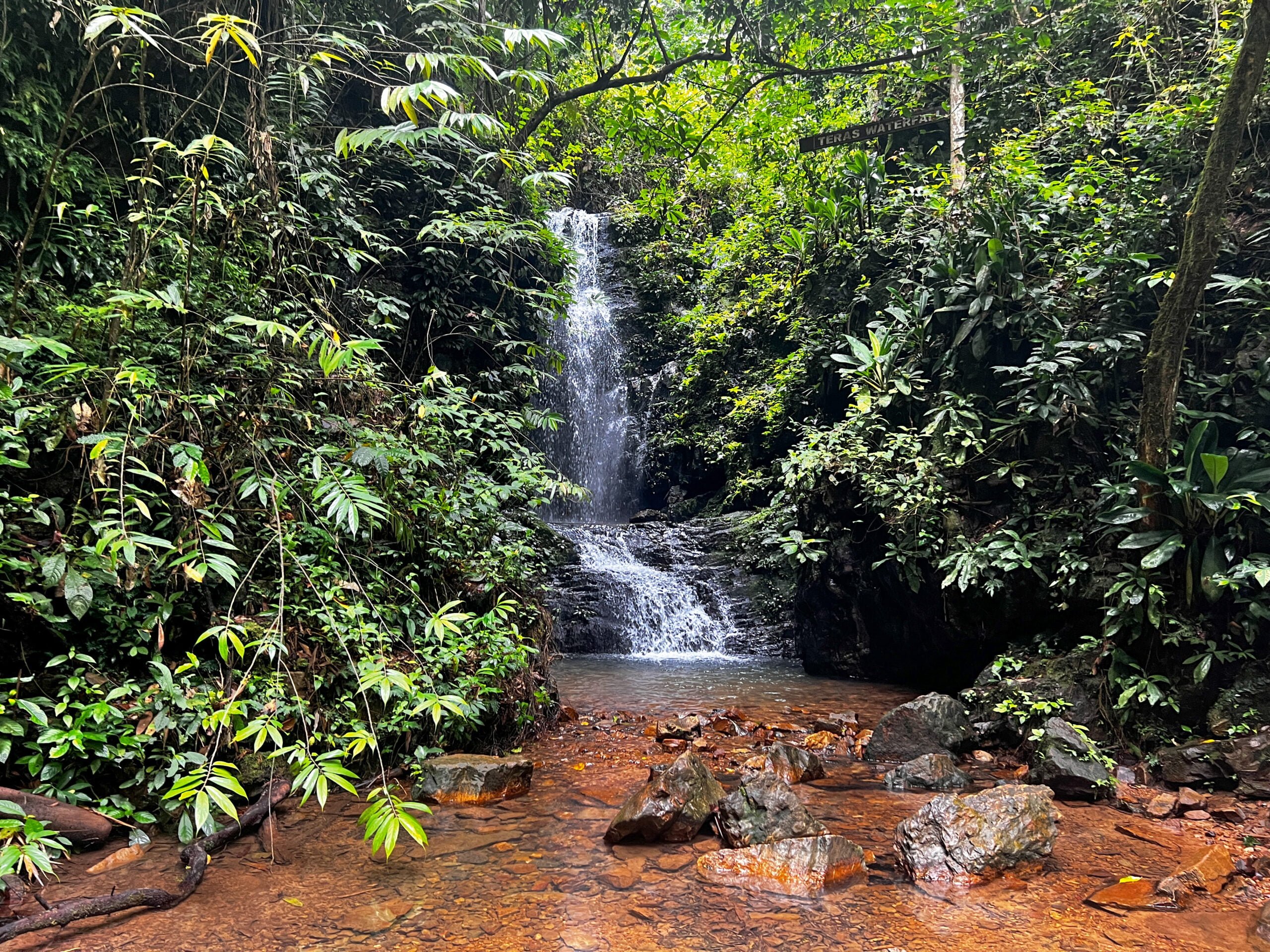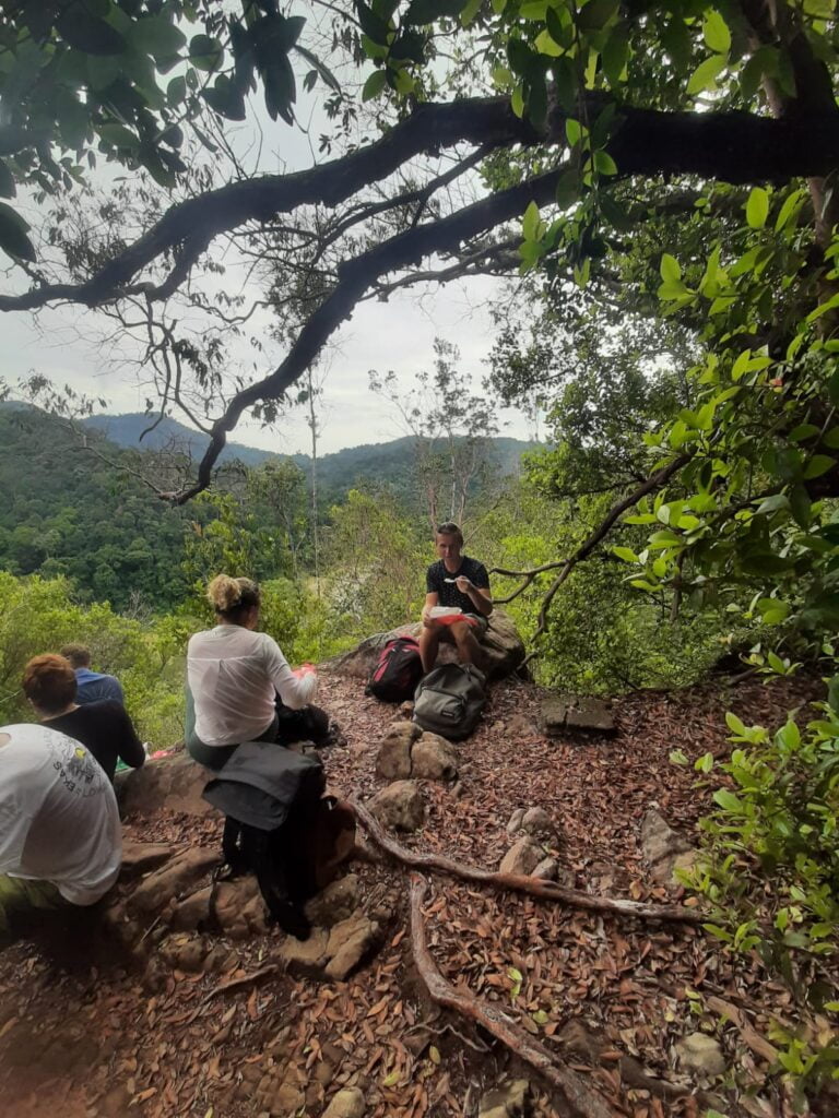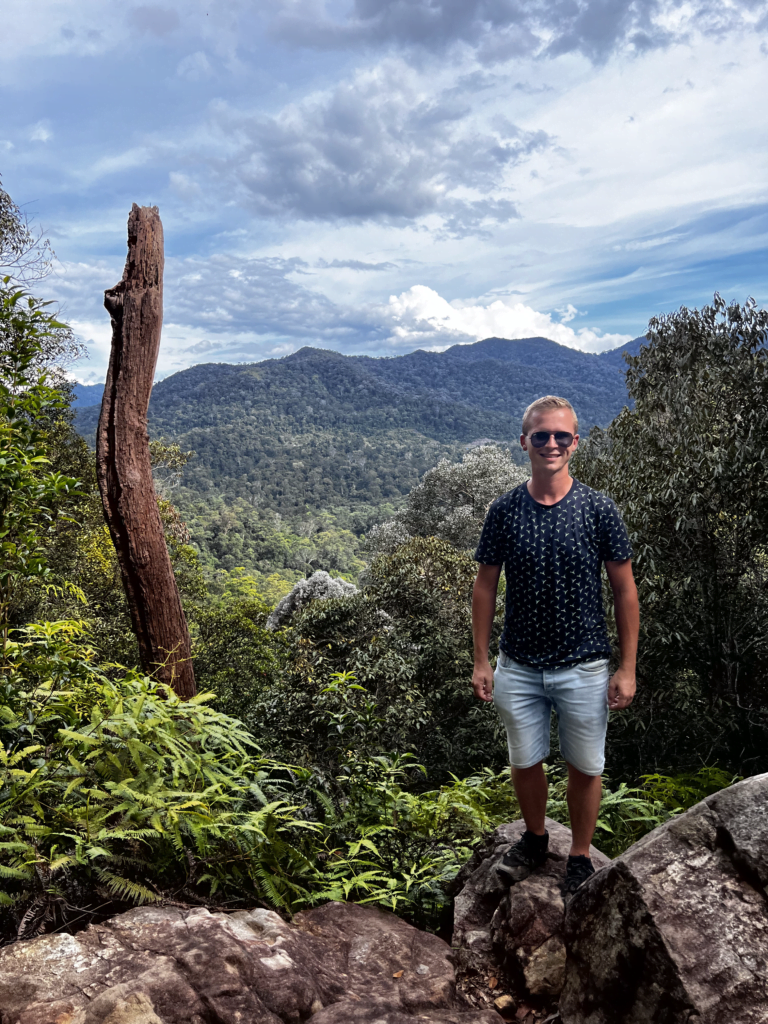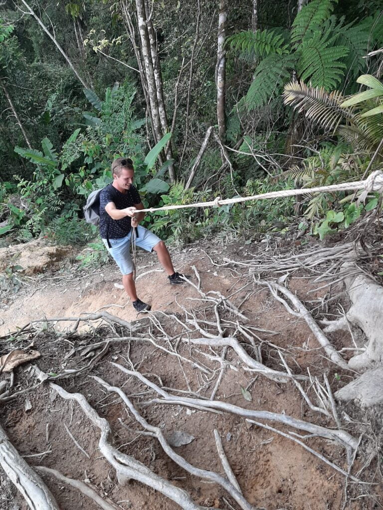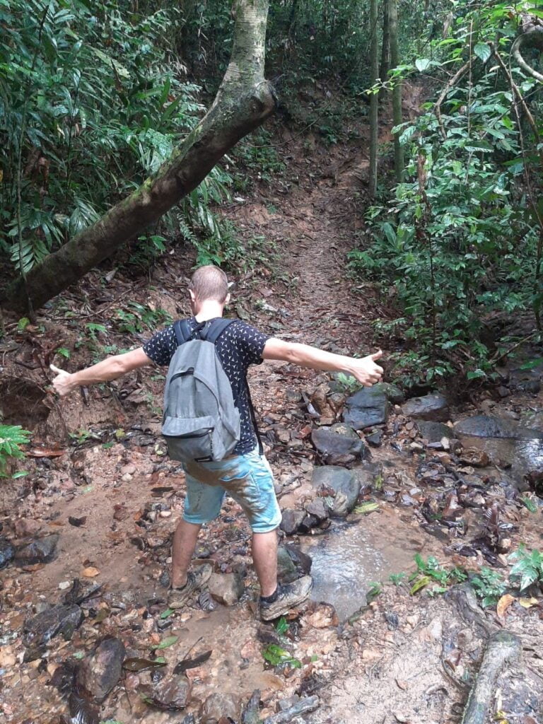 De dag erna hebben we met een gids en een groepje andere mensen een hele pittige hike gedaan ver weg van de standaard paden, deze duurde de hele dag. Het was de zwaarste hike die ik tot nu toe in Maleisië gedaan heb en het tempo lag ook lekker hoog. We begonnen rustig met de ‘Canopy walk’ welke over verschillende hoge loopbruggen ging die een geweldig uitzicht gaven. Vanaf daar hebben we urenlang berg op en berg af gelopen tot we bij een uitzichtpunt terecht kwamen. Daar hebben we ons lunchpakketje gegeten (nasi natuurlijk, op zijn Aziatisch). Nog 4 kilometer verder kwamen we uit bij een waterval die midden in de jungle verstopt zat, daar hebben we een tijdje uitgerust.