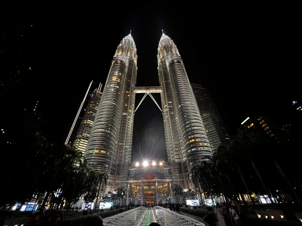 Na het avondeten hebben we eerst nog wat rondgelopen in deze lange gezellige straat en daarna zijn we door de stad naar de 452 meter hoge Twin Towers gelopen. ‘S avonds zijn deze helemaal verlicht en hebben ze daardoor een extra indrukwekkende uitstraling. In 1998 waren dit de hoogste gebouwen ter wereld maar dat record staat ondertussen op de naam van Dubai.