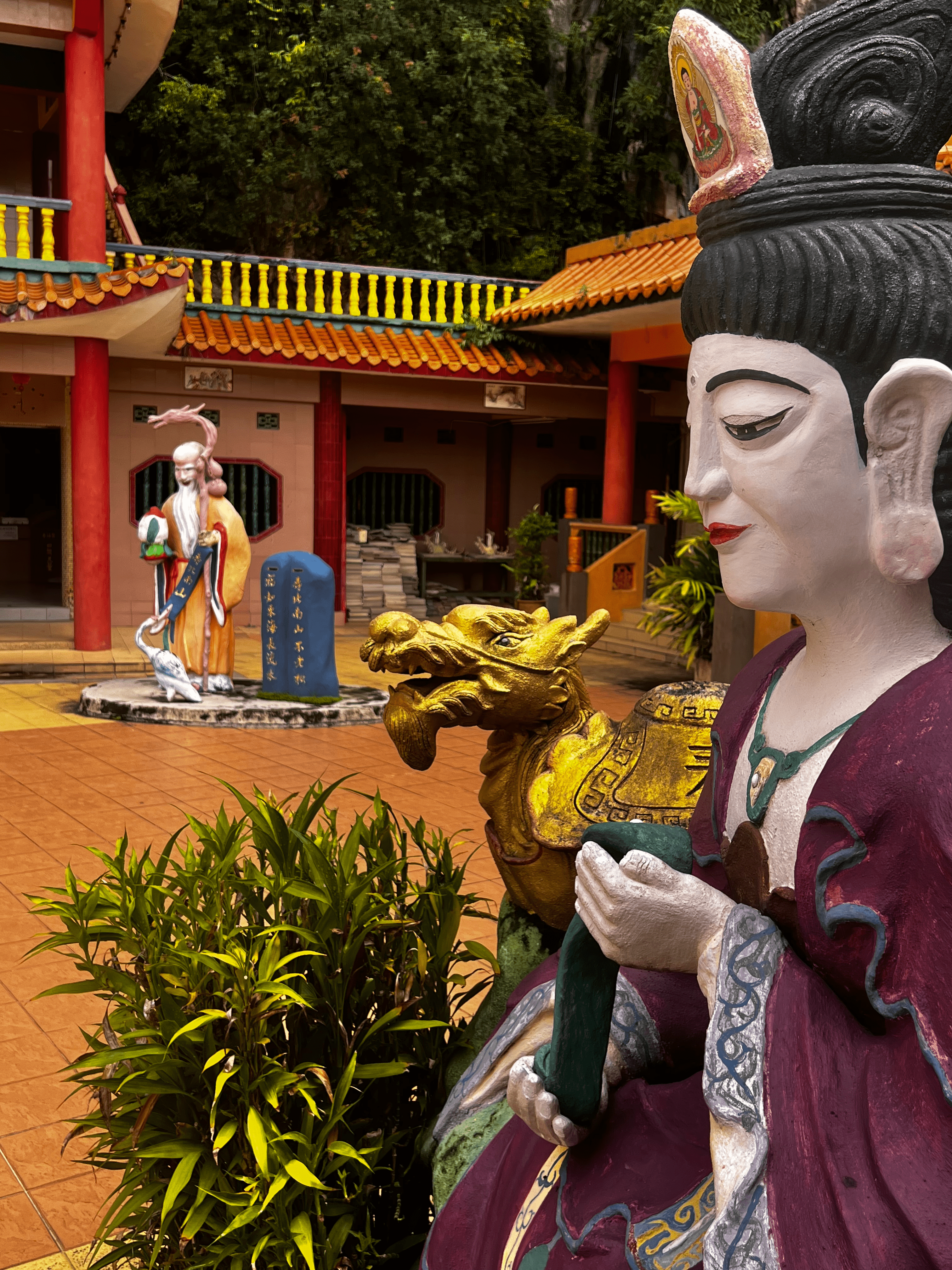 We zijn er in 2,5 uur tijd met de bus naartoe gereden en nadat we er een pasta met eend en pasta met zeevruchten gegeten hebben, begonnen we aan de Ipoh heritage trail. Een wandelroute die ons in een kleine 3 uur tijd langs alle bezienswaardigheden bracht en een ideale manier om veel te zien op een middag tijd. De bekendste straat of eigenlijk brede steeg was de ‘Concubine Lane’, waar 100 jaar geleden nog drugsbaronnen, gokkers en prostituees het straatbeeld vormden. Momenteel hebben die plaatsgemaakt voor lekkere restaurantjes en kraampjes waar ze onder andere ‘Raindrop Ice’ verkopen, erg lekker!