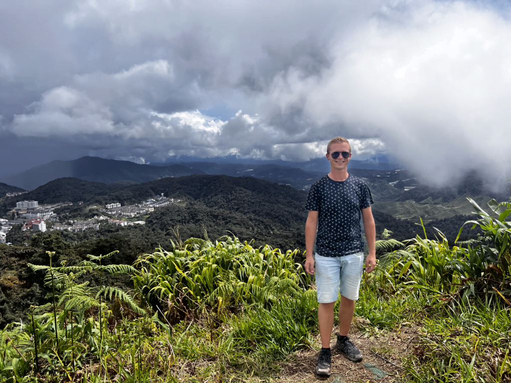 De Cameron Highlands staan bekend om de grote theeplantages en liggen met 1500 meter boven zeeniveau op het hoogste punt van Maleisië. Dat merkten we meteen toen we uit de bus stapten, het klimaat is hier totaal anders. Waar het normaal 24 uur per dag warm is in Maleisië, voelt het hier een beetje als hetzelfde klimaat als de lente in Nederland. Zodra de zon ondergaat begint het naar Maleisische begrippen dus echt fris te worden en moet je toch echt een zomerjas aan, jullie hebben vast al medelijden.