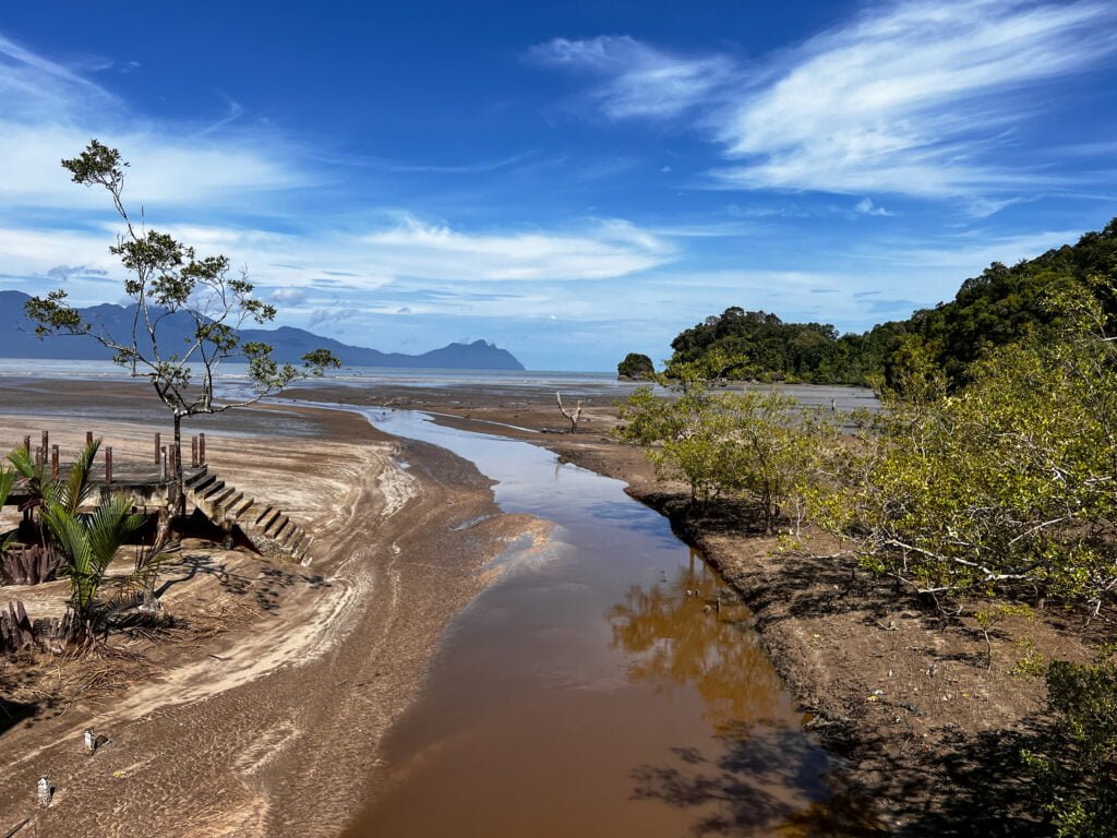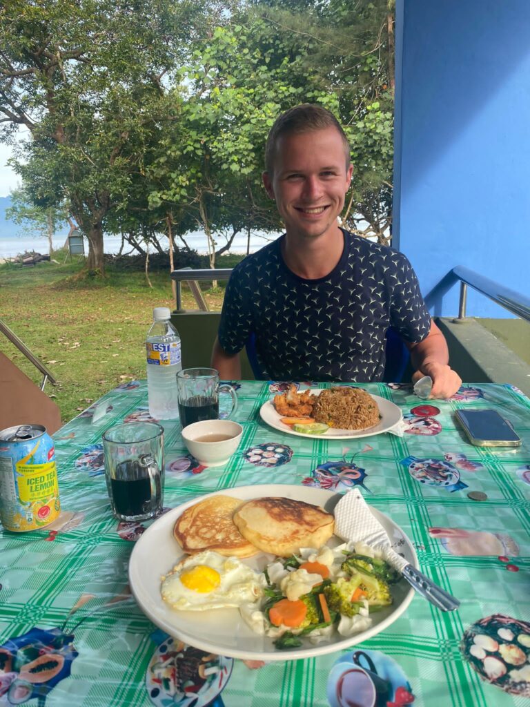 Na het ontbijt zijn we weer voor een hike van 3.5 uur het regenwoud in gegaan. We waren midden op de route toen de man die ons per boot weer terug zou brengen naar de haven belde dat we binnen 30 minuten bij de boot moesten zijn. Het werd te snel eb en anders ging het vanmiddag niet meer lukken. Niki had vanavond een vlucht die hij moest halen dus er was weinig anders mogelijk dan heel hard te gaan rennen, wat met 30 graden en deze luchtvochtigheid een leuke uitdaging was. Binnen 35 minuten (in plaats van 1u40 op normaal tempo) stonden we bij de boot. Die moesten we overigens al duwend helpen gezien het water zo snel wegtrok dat de boot vast zat.