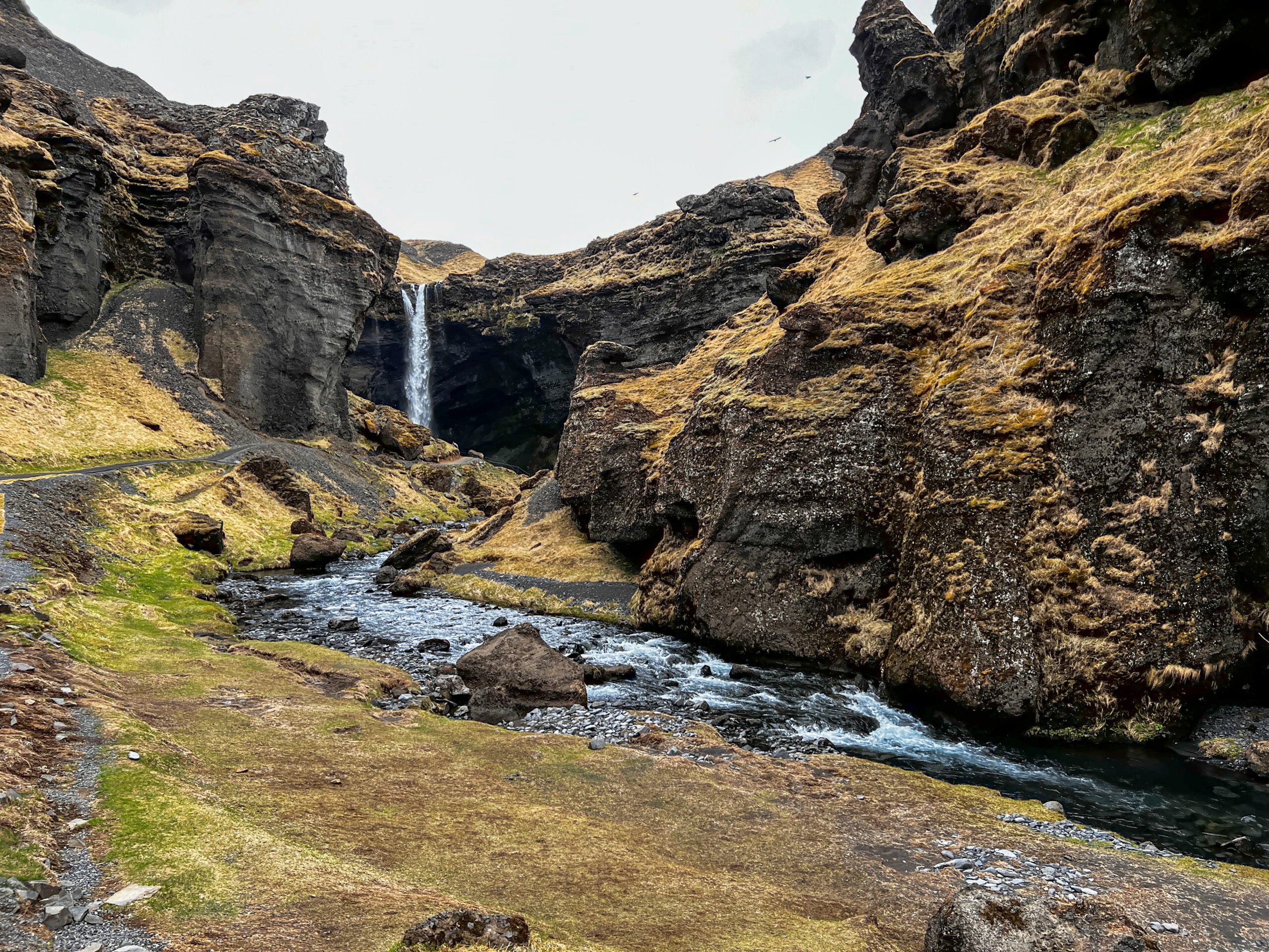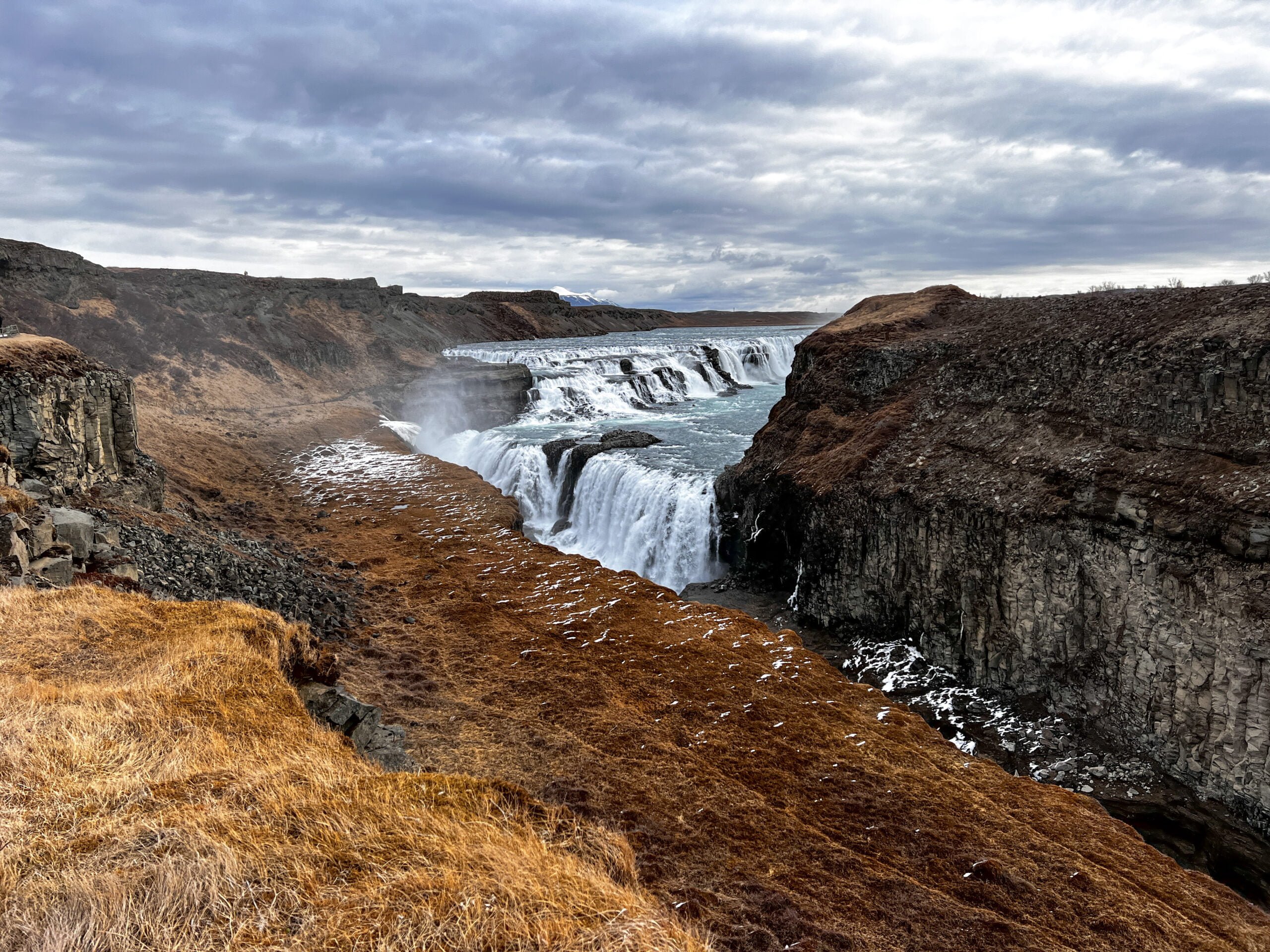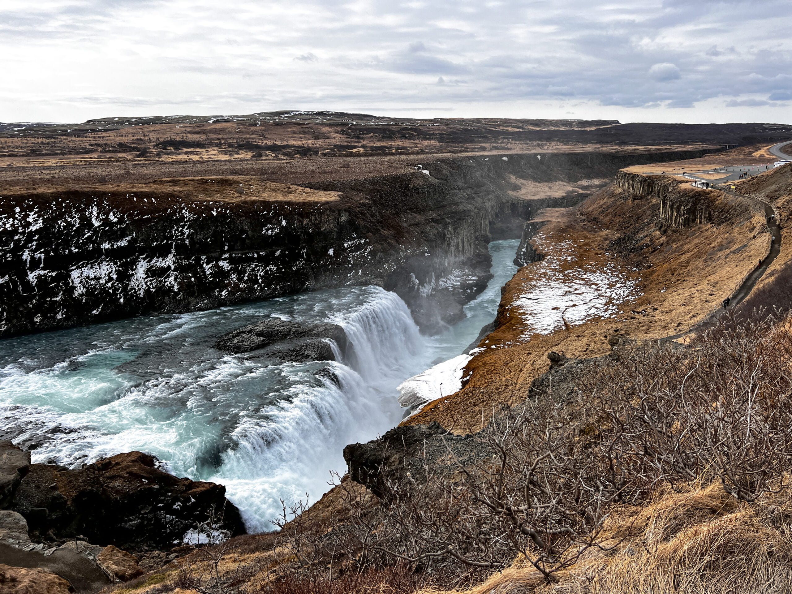 Dinsdag zijn we de dag begonnen met een wandeling van een paar kilometer naar de indrukwekkende Gullfoss watervallen waar de rest van de familie met de gids in de bus naartoe is gekomen. Op onze route van ongeveer 200 kilometer richting het volgende hotel in de plaats Vik zijn we op meerdere mooie locatie’s gestopt. Het landschap wisselt zich continue af tussen vlakke velden vol met sneeuw en rotsachtige gebieden die begroeid zijn met groen.