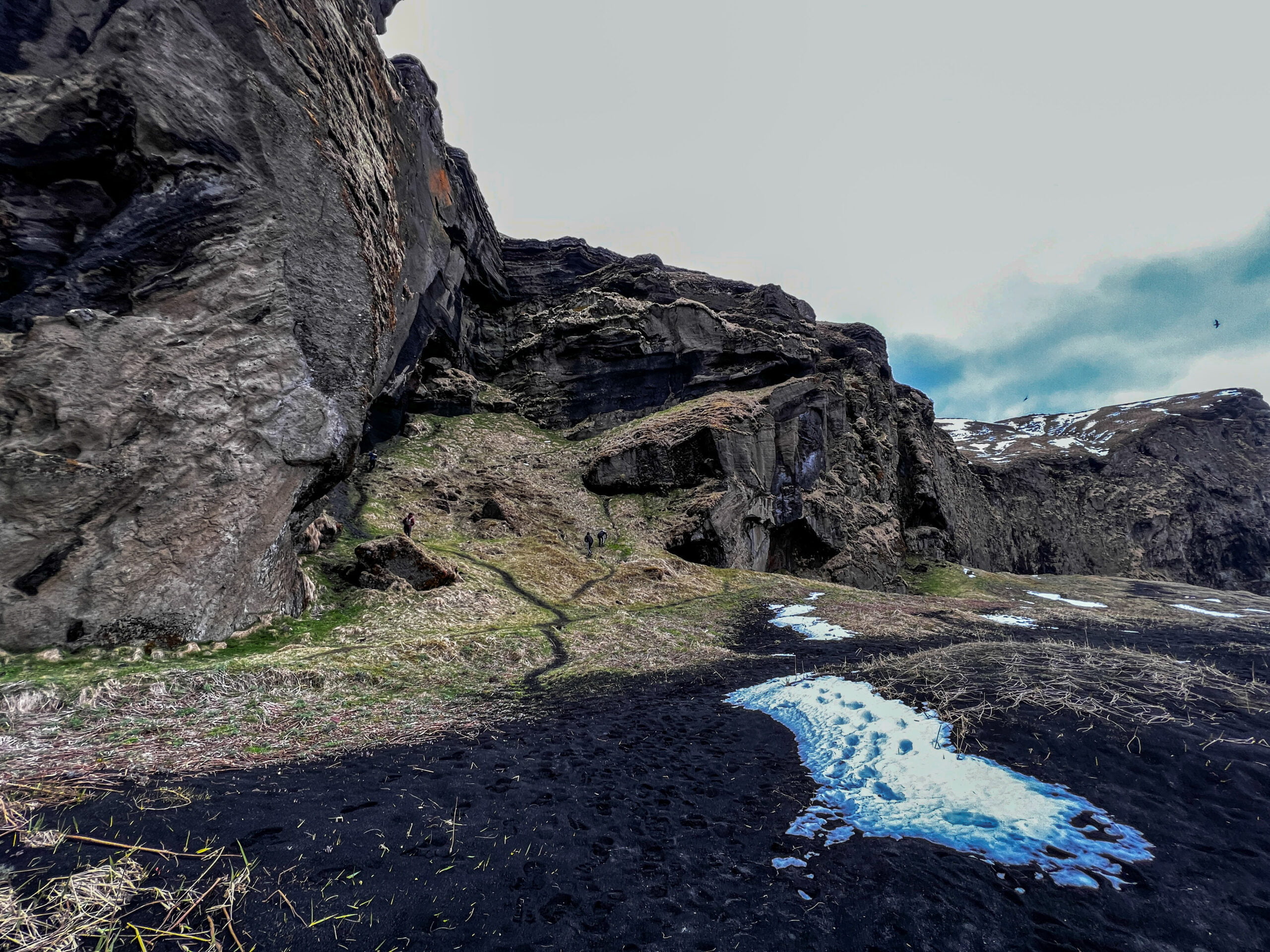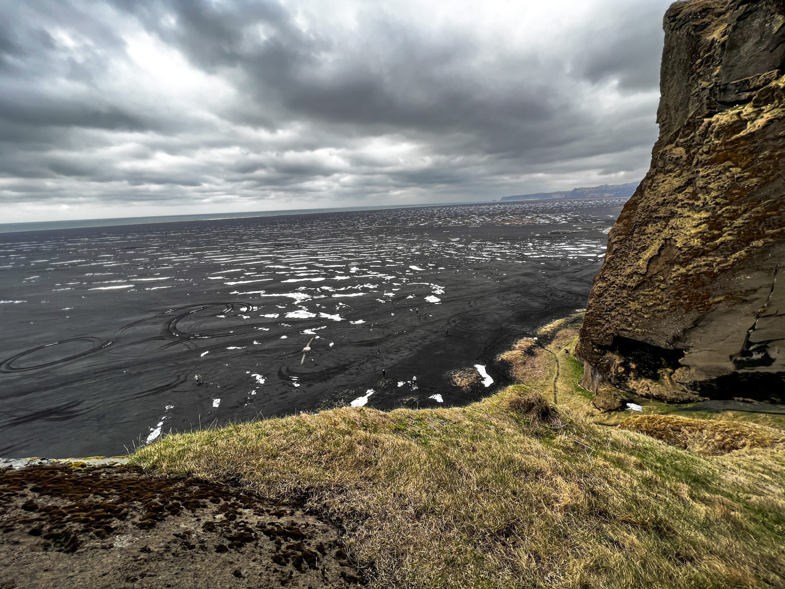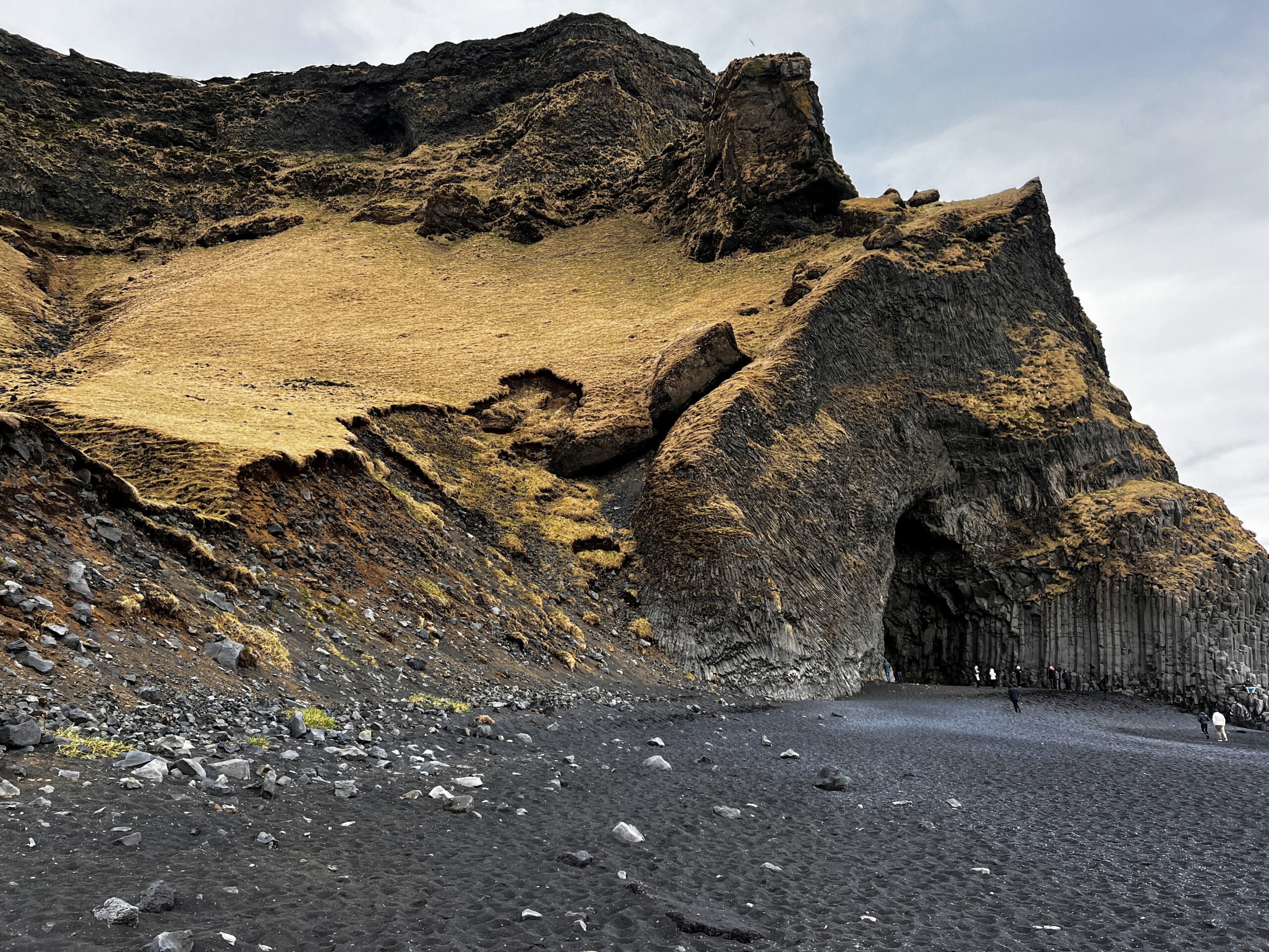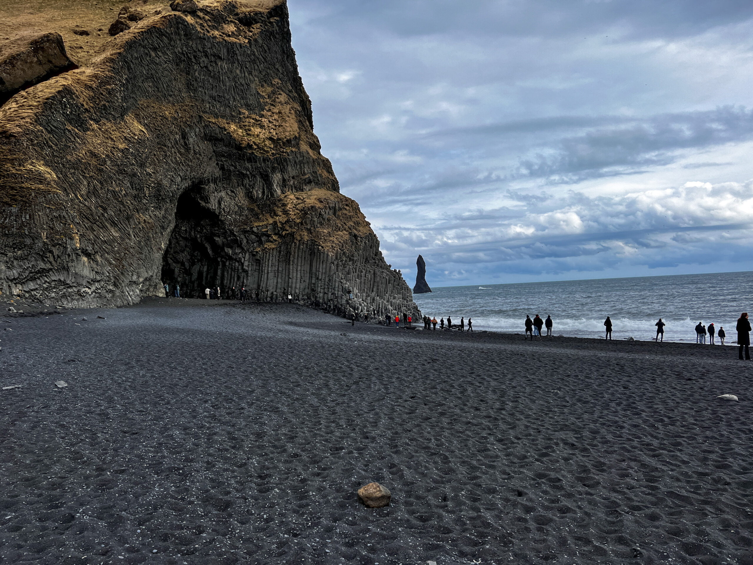 Na de watervallen zijn we gestopt bij een strand dat vol ligt met zwart zand dat zich in de loop der tijd gevormd heeft door zwarte vulkanische rotsen. We moesten voldoende afstand van de zee houden in verband met de ‘Sneaker waves’. Deze kunnen uit het niets meters ver het strand op stromen en iedereen die er staat meetrekken de zee in en in de sterke stroming laten verdwijnen.