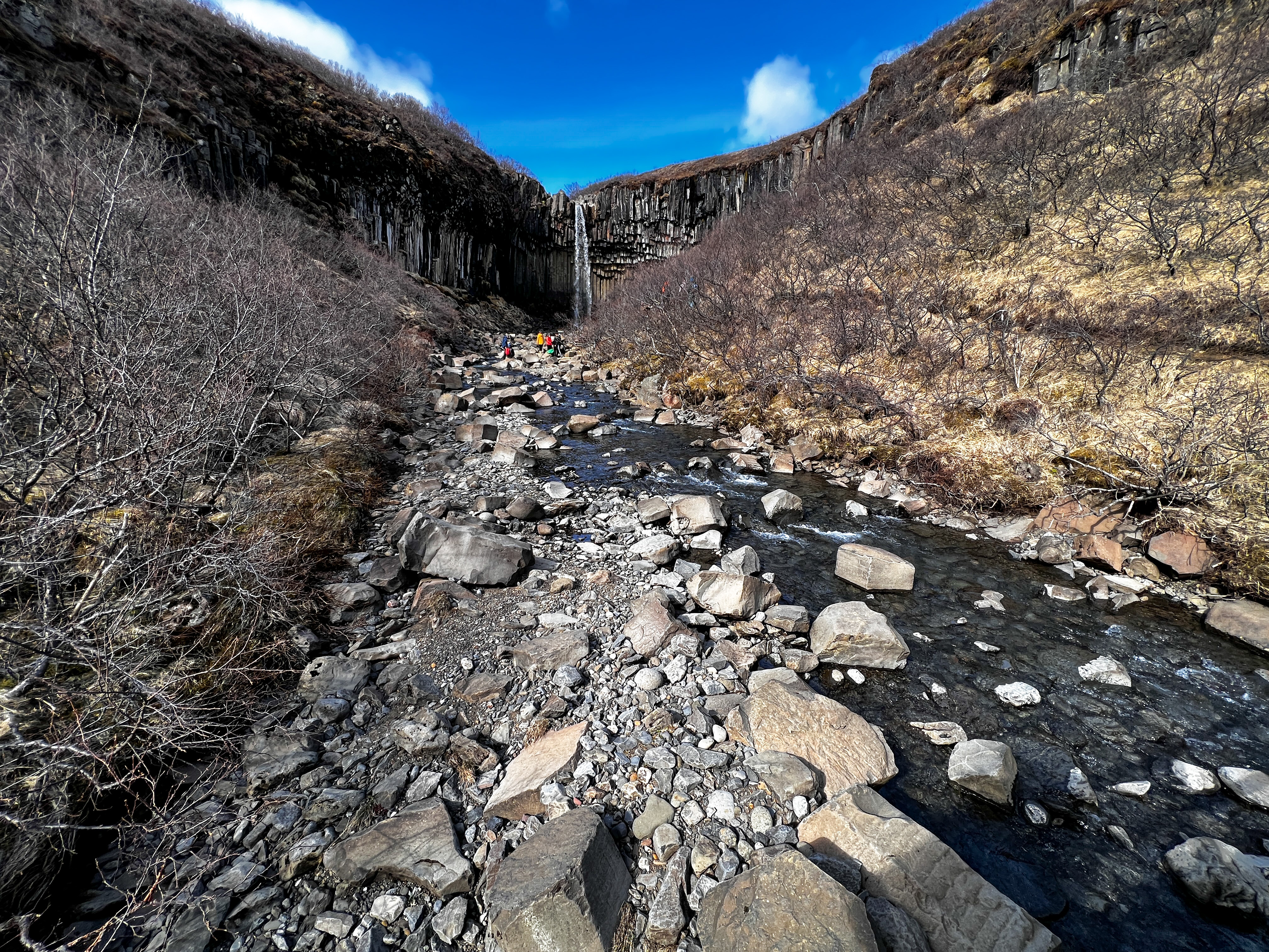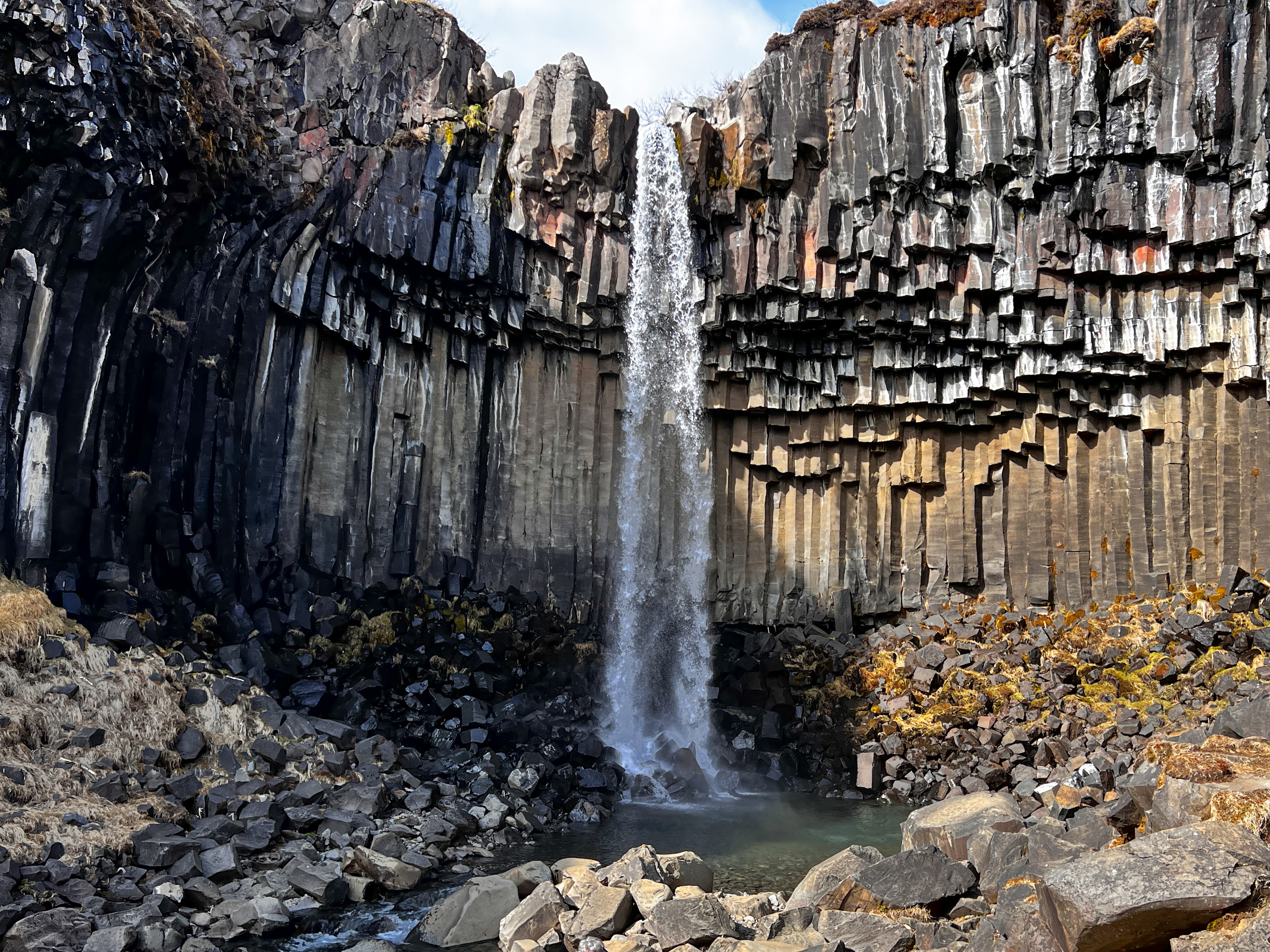 In de middag hebben we een wandeling van een kleine 2 uur gemaakt door een heuvelachtig gebied om heen en weer naar de Svartifoss waterval te lopen. Ondanks dat we nu al verschillende watervallen gezien hebben in IJsland was dit toch weer een hele andere, gezien die omgeven werd door kolommen van zwart basalt. Dit is zoals veel dingen in IJsland ontstaan door lava, die hier langzaam is afgekoeld en daardoor gekristalliseerd is. Blijkbaar zijn er zelfs gebouwen in de hoofdstad Reykjavik gebouwd in de stijl van deze basaltkolommen naast de waterval.