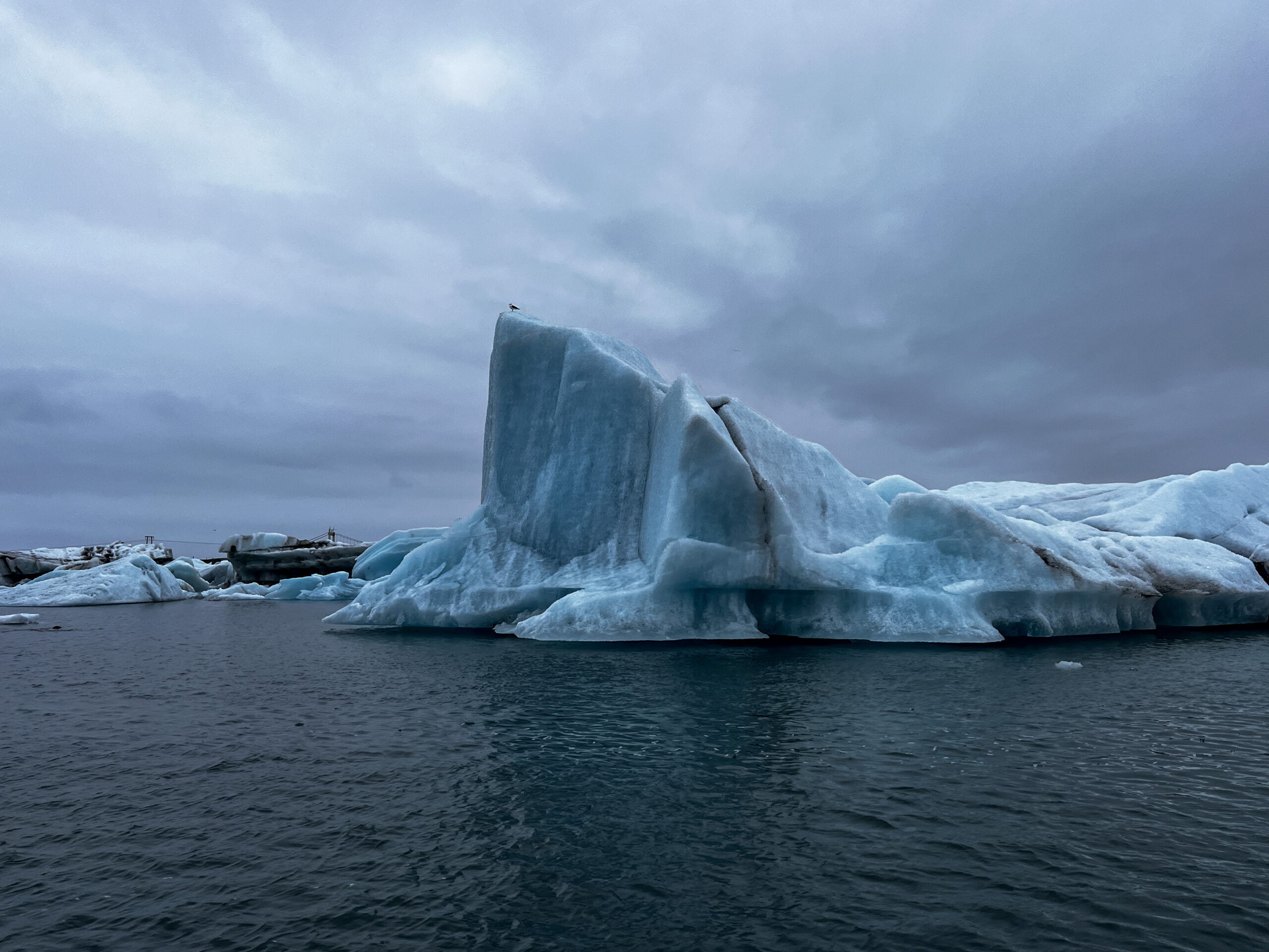 De omgeving is in ieder geval het perfecte plaatje voor een winterse filmset en er zijn dan ook meerdere beroemde films opgenomen zoals ‘Frozen’ bijvoorbeeld. Tussen de ijsschotsen zwemt af en toe vrolijk een zeehond voorbij en op de helft van de 1-urige boottocht maken we een korte stop zodat de lokale gids ons wat meer kan vertellen over de omgeving. Zo vertelde ze dat de megagletsjer waar de ijsschotsen vandaan komen in ongeveer 80 jaar compleet verdwenen zal zijn door de opwarming van de aarde. Dat zou bizar zijn want dit gaat om maar liefst 8100 vierkante kilometer, ongeveer anderhalf keer Noord-Brabant dus.
